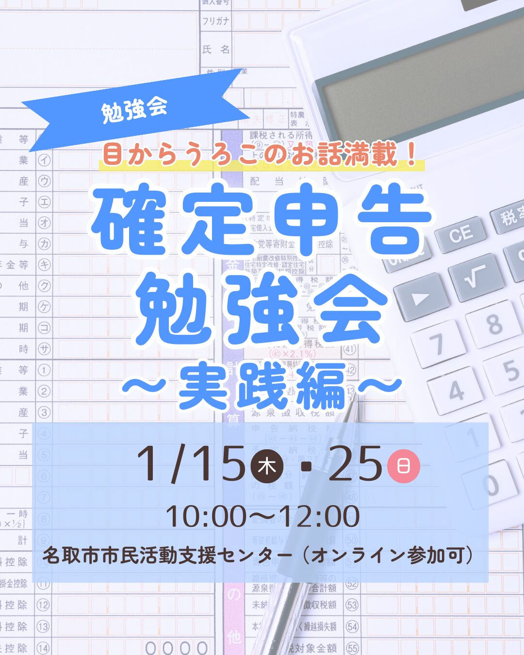 1/15(木)・25(日)確定申告勉強会~実践編~を開催します